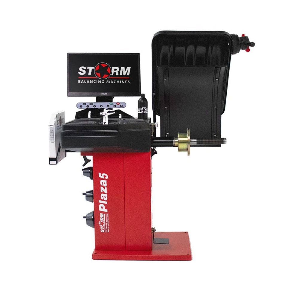 Станок балансировочный СТОРМ Plaza-5 – автоматический балансировочный станок с микропроцессорным управлением и обработкой информации от российской компании, произведен и собран на заводе в Санкт-Петербурге. Является улучшенной версией станка Plaza 3.СТОРМ Plaza-5 – прецизионное (высокоточное) устройство, которое применяется для балансировки колес легковых автомобилей, микроавтобусов и легких грузовиков с диаметром диска до 30 дюймов и шириной до 20 дюймов. Как и все балансировочное оборудование СТОРМ, сочетает в себе надежность и простоту использования, а также гарантию 24 месяца, в том числе на гайку и вал.Станок обеспечивает измерения статического (при свободном вращении) и динамического (при вращении на высокой скорости) дисбаланса колеса. Кроме того, СТОРМ Plaza-5 осуществляет вычисление масс корректирующих грузов и их положения в двух плоскостях коррекции (на наружной и внутренней сторонах диска колеса) за один цикл измерения.Особенности:- Увеличенная линейка дистанции для более широких дисков (+25 мм);- Клавиатура вынесена на кронштейн монитора - экономия дополнительного места на рабочем столе.- Неподвижная часть кожуха выполнена из пластика со скруглёнными элементами, что защищает от травм в процессе эксплуатации;- Специальное место для емкости с обезжиривателем. Емкость идет в комлекте со станком.- На кожухе установлен специальный крепеж для быстросъемной гайки. Она больше не занимает место на рабочем столе и располагается удобно для оператора.- На станке сделано специальное отверстие для хранения молотка-клещей, что освобождает пространство на рабочем столе и позволяет оператору легко воспользоваться молотком при необходимости.- В Plaza 5 установлен кронштейн, в который помещается лента грузиков балансировочных СТОРМ (6 кг). Данное нововведение позволяет расчистить рабочий стол, а также ускорить обслуживание. Когда лента заканчивается, достаточно вытащить упаковку из кронштейна и вставить новую.
