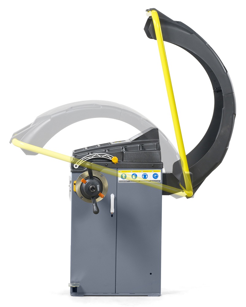 Запуск процедуры измерения дисбаланса опусканием защитного  кожуха.