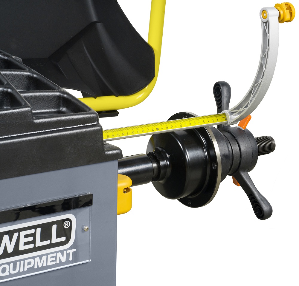 Бесконтактный ультразвуковой датчик измерения ширины и электромеханический вал увеличивают производительность станка. Точечный лазерный указатель места установки грузов увеличивает скорость установки груза и повышает производительность работы оператора. Груз можно установить вручную абсолютно точно в расчетную точку (по углу и по дистанции) без применения зажима на линейке. Эффективен для балансировки легкосплавных дисков больших размеров.