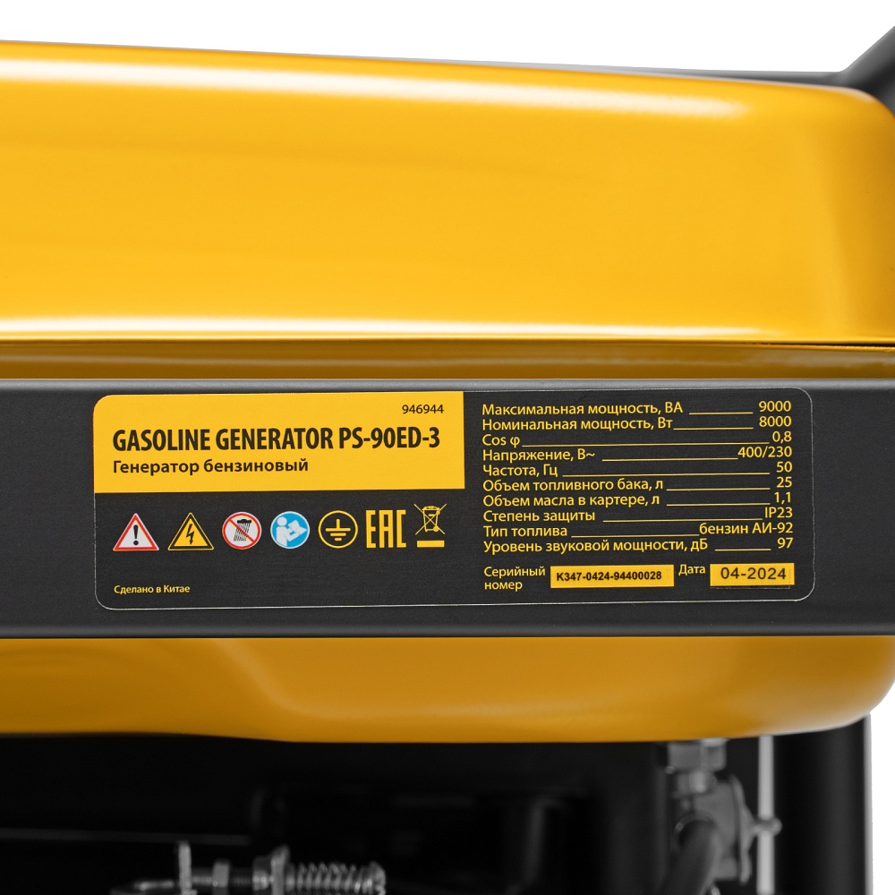 Генератор бензиновый PS 90 ED-3, 9.0 кВт, переключение режима 230 В/400 В, 25 л, электростартер Denzel купить в Тюмени цена ✅ - Все для СТО