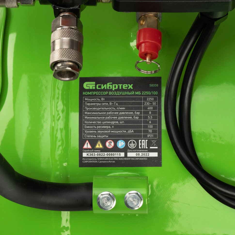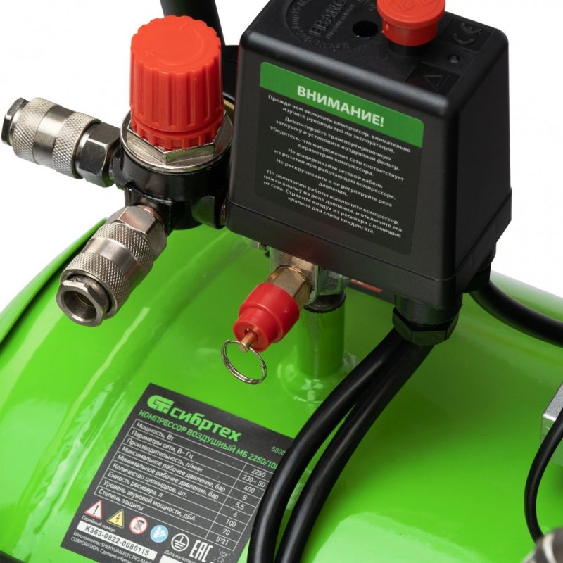 Компрессор безмаслянный малошумный МБ 2250/100, 2250 Вт, 100л, 400 л/мин// Сибртех купить в Тюмени цена ✅ - Все для СТО