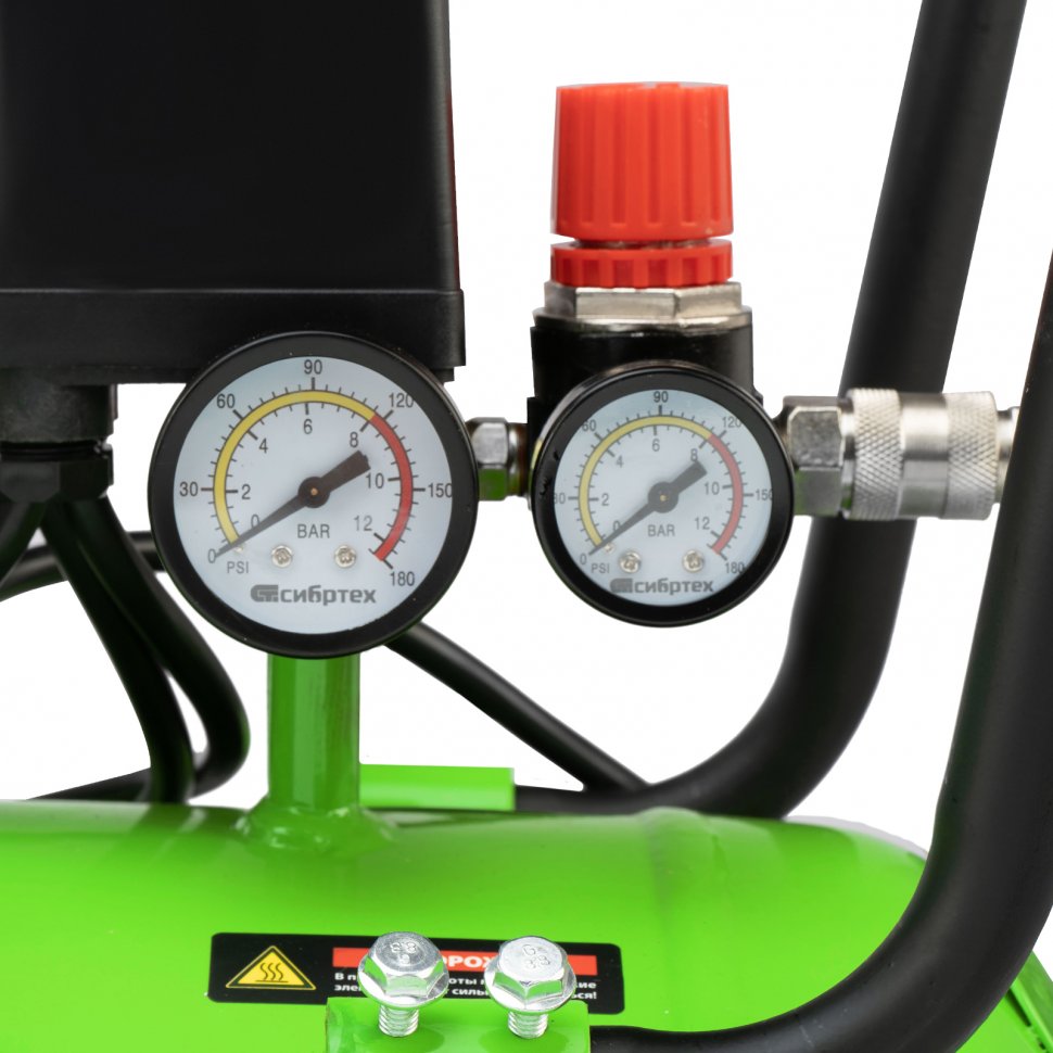 Контроль рабочих параметров — компрессор оборудован механическим манометром для отслеживания давления.