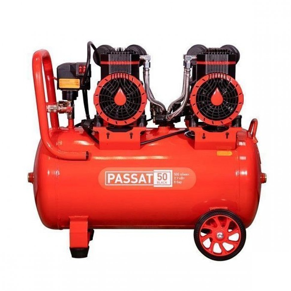 Компрессор PASSAT-50 BLACK тихий, без масл. (45л, 500л/мин, 2.9кВт)