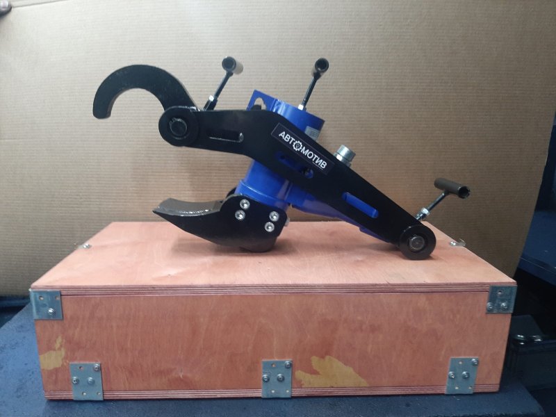 Также используется для замены шин на погрузчиках. Инструмент можно использовать, не только в ремонтных зонах спецтехники, но и в полевых условиях. Для работы с гидравлическим отбортовывателем необходим только гидравлический насос с РВД и подходящим адаптером для коммутации гидроцилиндра и насоса (данные компоненты приобретаются отдельно).