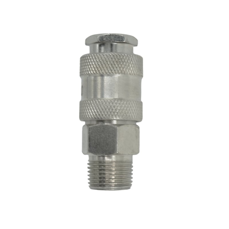 Быстросъемное пневматическое соединение с внешней резьбой 3/8". Предназначено для удобного и надежного подключения в пневматических системах.