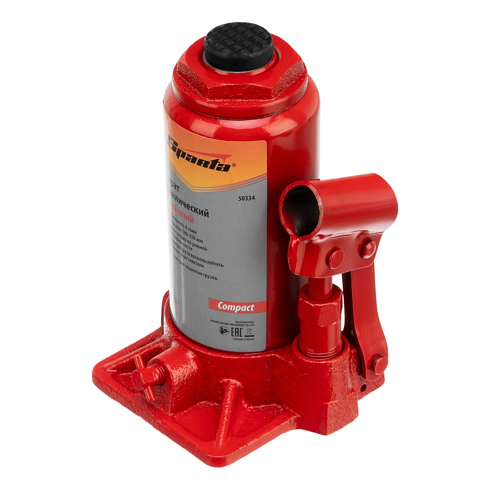 Гидравлический бутылочный домкрат Sparta Compact 50334 предназначен для подъема грузов весом до 8 т на высоту 180-350 мм. Существенно облегчает рабочий процесс, т.к. не требует больших усилий от пользователя. Домкрат будет полезен в автосервисе и гараже для проведения технического обслуживания авто.