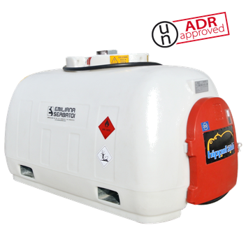 "Резервуары мини АЗС для дизельного топлива объёмом 960 литров предназначены для безопасной транспортировки, хранения и заправки техники в полевых условиях. Емкости изготовлены из полимера высокой плотности по инновационной литьевой технологии (без швов). Полупрозрачный некорродируемый и виброустойчивый корпус дает возможность визуального контроля за уровнем топлива, устойчив к перепадам температур, давления. Созданные на базе резервуаров Hippotank мобильные АЗС надежно крепятся ременными растяжками на транспортных платформах (кузов, прицеп). Боковые входы для вилочного погрузчика усилены трубками из высокотвердой углеродистой стали. На верхней плоскости резервуара расположена заливная горловина (Ǿ220 мм) с плотно завинчивающейся крышкой, металлической запорной скобой и вентиляционным клапаном. В торцевой части находится технологический закрывающийся отсек, в котором смонтировано оборудование для перекачки топлива: электронасос 12V или 24V (работает от аккумулятора), топливораздаточный пистолет-автомат с анти