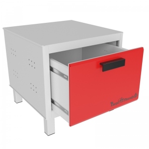 1 большой выдвижной ящик с внутренними размерами (ВхШхГ) 310х450х545мм (с учетом высоты ножек). Ножки в комплект не входят. Нагрузочная способность малых ящиков - 50кг., больших ящиков - 80кг. Полная нагрузочная способность подставок 700кг. Предназначены для установки под шкафы или тумбы, и используются для хранения различных инструментов и вещей. Установка подставки возможна в 2-х вариантах: непосредственно на пол или на ножки. Высота ножек составляет 125мм., соответственно высота подставки увеличивается до 577мм. Также подставки можно скомплектовать пластиковыми лотками, которые служат защитным покрытием для верхней части.