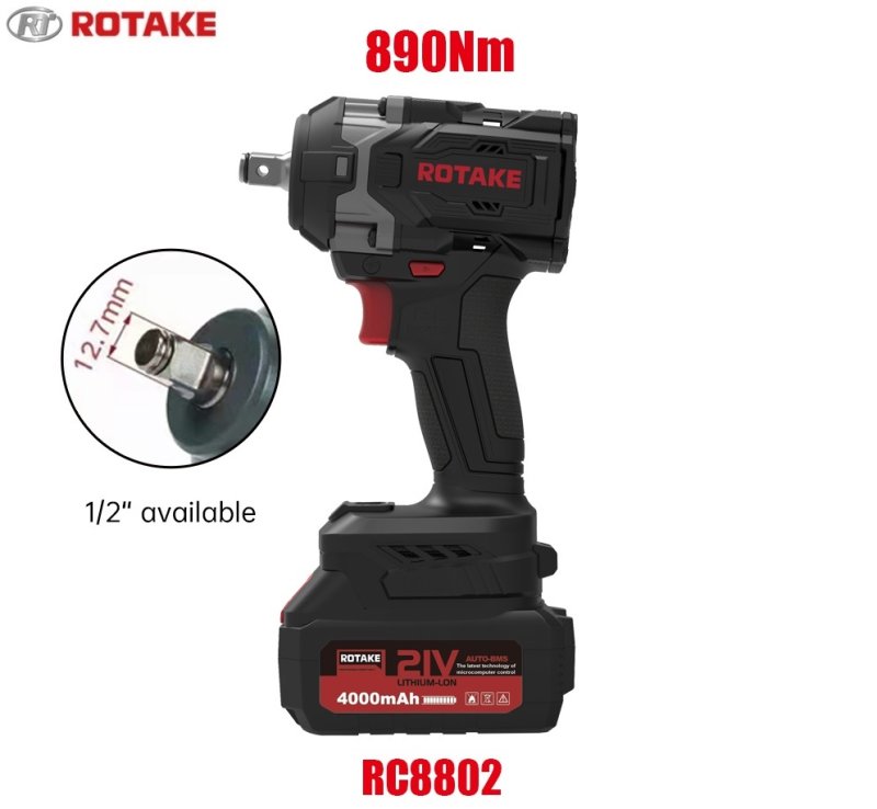 Не нуждается в пневмосети и электросети. Мощный ударный аккумуляторный гайковерт Rotake для закручивания и откручивания болтов и гаек, с максимальным крутящим моментом 890Нм. Высокоскоростной бесщеточный двигатель гарантирует высокую мощность, а следящая электроника - продолжительную работу. Напряжение аккумулятора: 21В. 3 режима регулировки усилия. В комплекте предусмотрено 2 аккумулятора емкостью 4Ач и зарядное устройство 1,8A. Технические особенности аккумуляторного ударного гайковерта RC8802: · Бесщеточный двигатель: большая мощность, экономно расходует заряд батареи и отличается более долгим сроком службы · Напряжение аккумулятора: 21В · 3 режима регулировки усилия + Реверс. Двигатель имеет электронную муфту с тремя различными настройками скорости вращения: 1, 2, 3 (низкая, средняя и высокая). · Рукоятка с противоскользящем покрытием для надежного хвата · Встроенная светодиодная подсветка · Индикатор уровня заряда · Для работы без простоев в комплекте предусмотрено 2 аккумулятора емкостью 4Ач и зарядное устройство 1,8A. Полная зарядка разряженной батареи занимает примерно 1 час. · Эргономичный пластиковый кейс · Благодаря высокой мощности аккумуляторного гайковерта, возможно выполнять работы по выездному ремонту обслуживанию любого вида техники (легковой, грузовой, спецтехники и оборудования), шиномонтажные работы или ремонт личного транспорта