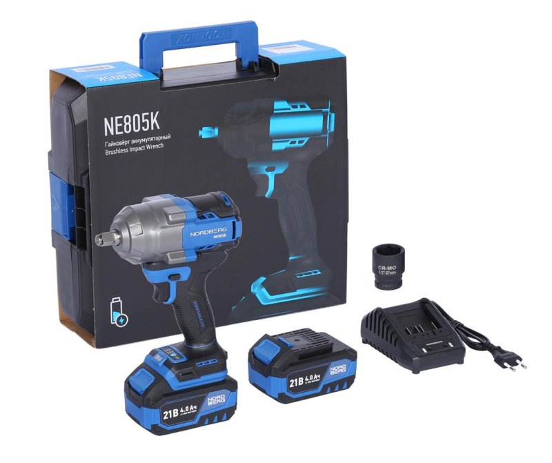 Гайковерт аккумуляторный, 1/2", 21 В, 1000 Нм, 2 аккумулятора 4 A и зарядное устройство, в кейсе NORDBERG NE805K купить в Тюмени цена ✅ - Все для СТО