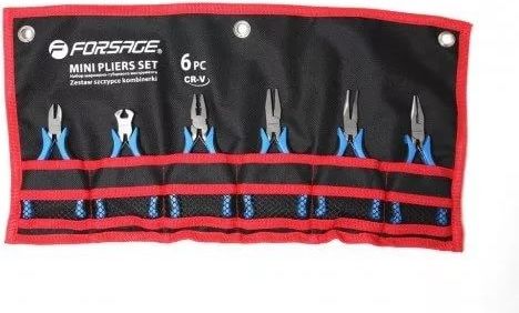 Набор шарнирно-губцевого инструмента мини 6пр. 5"-125мм(бокорезы, плоскогубцы-2шт, утконосы прямые/изогнутые, кусачки торцевые), на полотне Forsage F-50615