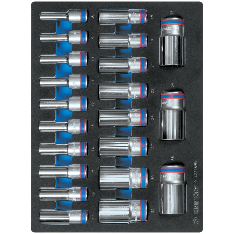 KING TONY Набор глубоких торцевых головок 1/2", двенадцатигранные, 8-36 мм, ложемент, 21 предмет KING TONY 9-4221MRV купить в Тюмени цена ✅ - Все для СТО