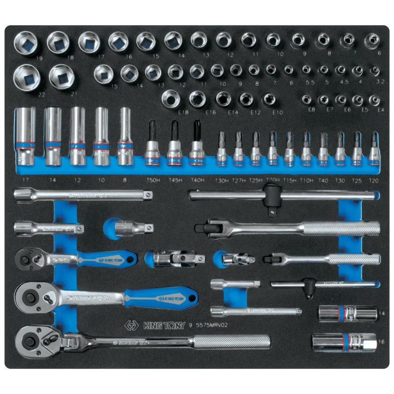 KING TONY Набор торцевых головок 1/4", 3/8" с принадлежностями, ложемент, 75 предметов KING TONY 9-5575MRV02