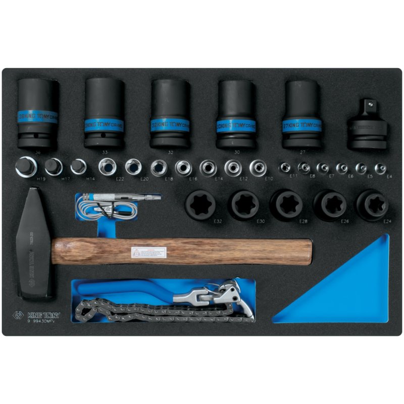 KING TONY Набор ударных головок 1", головок Torx Е-стандарт, молоток, съемник, тестер, ложемент, 30 предметов KING TONY 9-99430MFV купить в Тюмени цена ✅ - Все для СТО