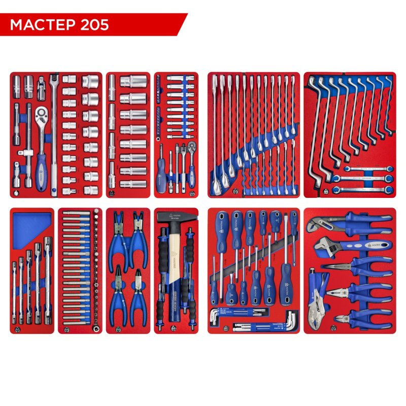 МАСТАК Набор инструментов "МАСТЕР" для тележки, 11 ложементов, 205 предметов купить в Тюмени цена ✅ - Все для СТО