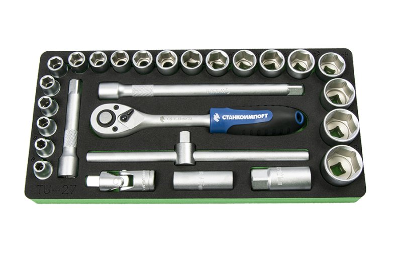 TU-27 Ложемент 1/2"с набором головок и аксессуары (27 предметов) купить в Тюмени цена ✅ - Все для СТО