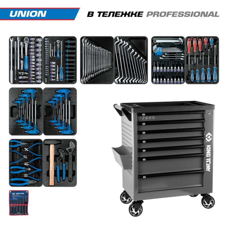 Набор инструментов 173 предмета, "UNION", в серой тележке KING TONY 9G38-000MRG купить в Тюмени цена ✅ - Все для СТО