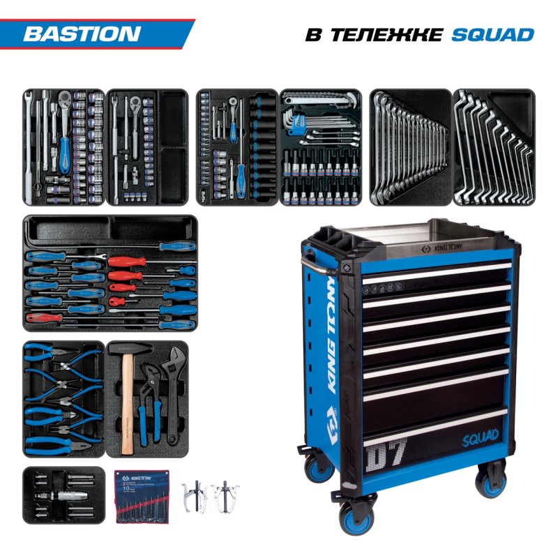 Набор инструментов 204 предмета, "BASTION", в синей тележке KING TONY 9SQ31-100MR купить в Тюмени цена ✅ - Все для СТО