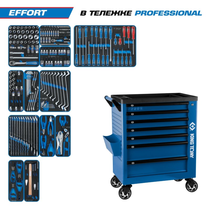 Набор инструментов 235 предметов, "EFFORT", в синей тележке KING TONY 9G38-235MRVB купить в Тюмени цена ✅ - Все для СТО