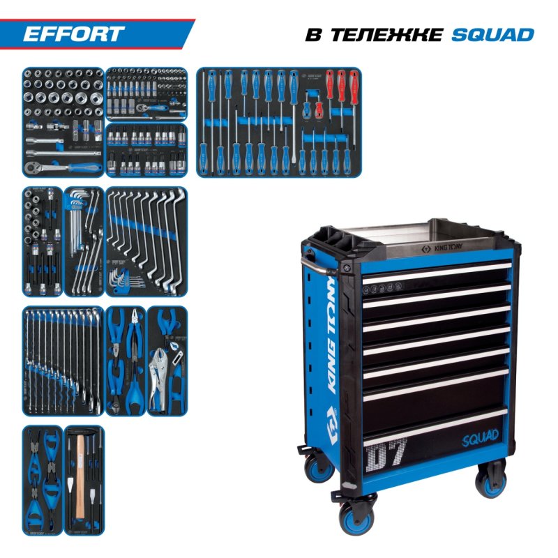 Набор инструментов 235 предметов, "EFFORT", в синей тележке KING TONY 9SQ31-235MRV купить в Тюмени цена ✅ - Все для СТО