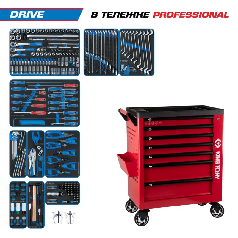 Набор инструментов 251 предмет, "DRIVE", в красной тележке KING TONY 9G38-251MRVR купить в Тюмени цена ✅ - Все для СТО