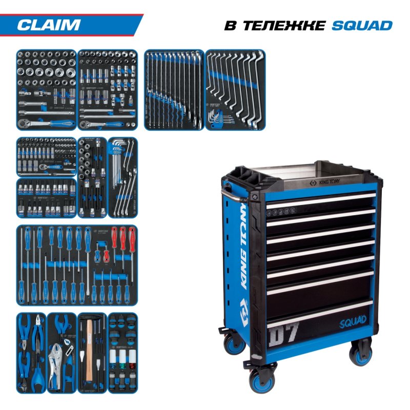 Набор инструментов 286 предметов, "CLAIM", в синей тележке KING TONY 9SQ31-286MRV купить в Тюмени цена ✅ - Все для СТО