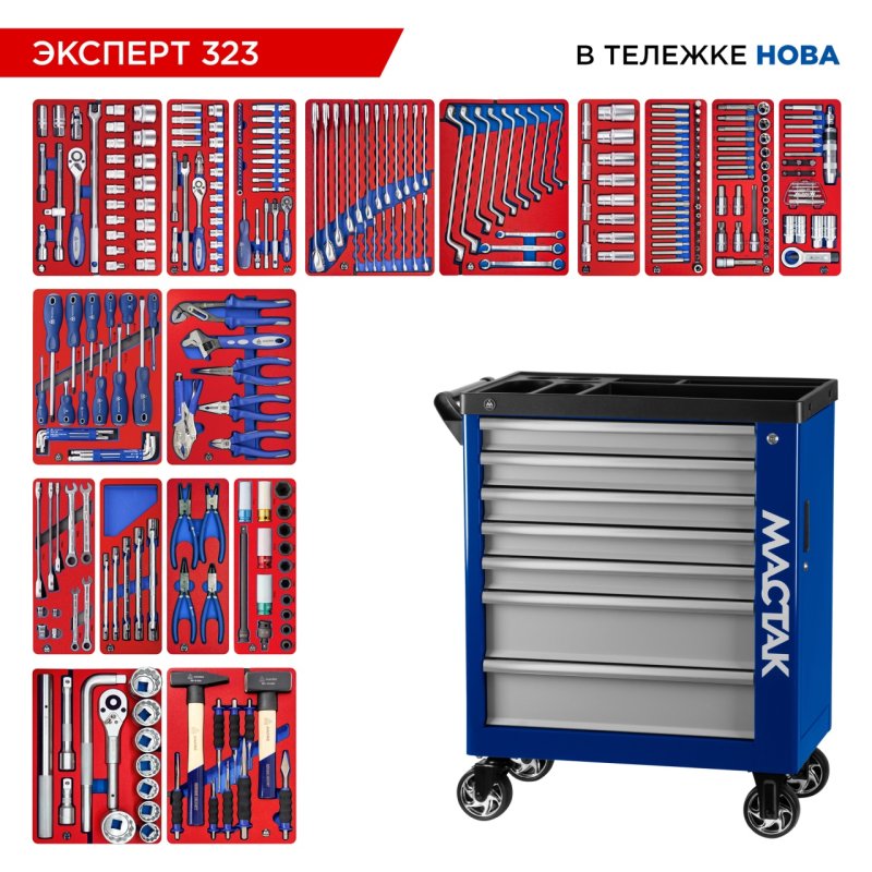 Набор инструментов 323 предмета, "ЭКСПЕРТ 323", в синей тележке МАСТАК 50-07323B купить в Тюмени цена ✅ - Все для СТО