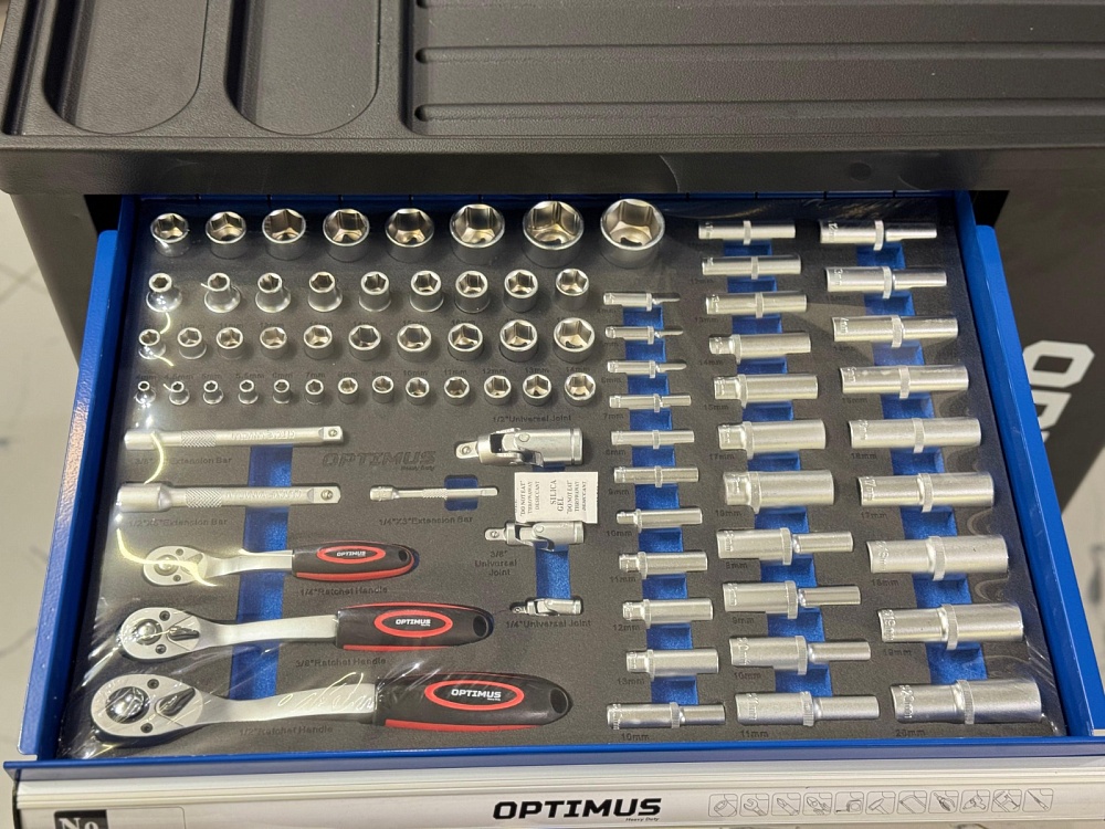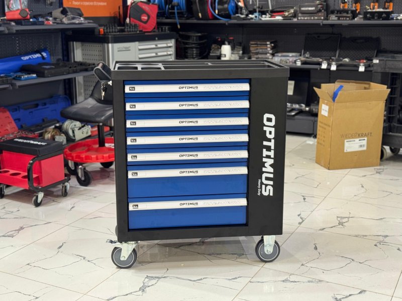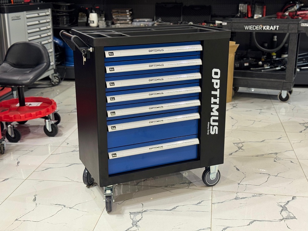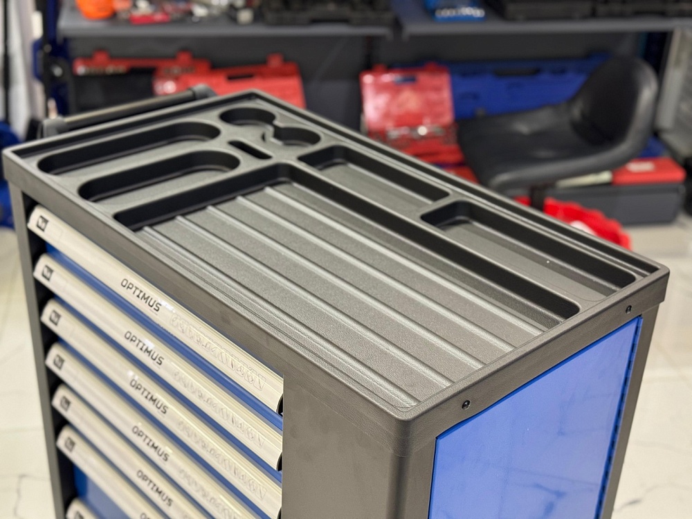 OPT-917P Тележка инструментальная 7 полок с набором инструментов, пластиковая столешница (289 предметов) Optimus купить в Тюмени цена ✅ - Все для СТО
