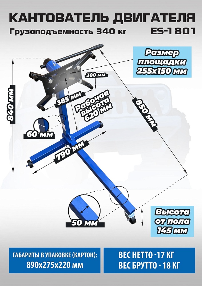 ES-1801 Кантователь двигателя 340 кг купить в Тюмени цена ✅ - Все для СТО