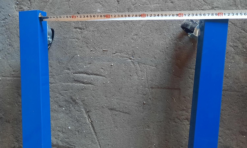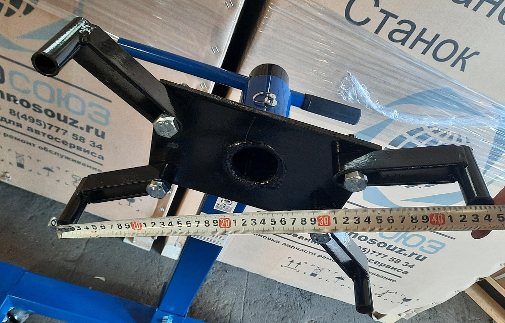 Конструкция стенда – складная сборно-разборная. После использования можно сложить и убрать, чтобы не мешался. Стенд легко маневрирует по полу цеха - все колеса металлические поворотные. Механический(ручной) привод с фиксацией положения. Стенд имеет регулировку захватов по оси вращения и вылету.