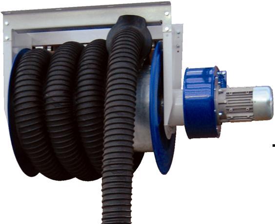 Катушки металлопластиковой конструкции со шлангом и насадкой для удаления выхлопных газов любых легковых автомобилей. Для удаления выхлопных газов катушки напрямую соединяются с вытяжным центробежным электровентилятором.