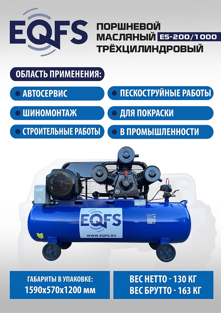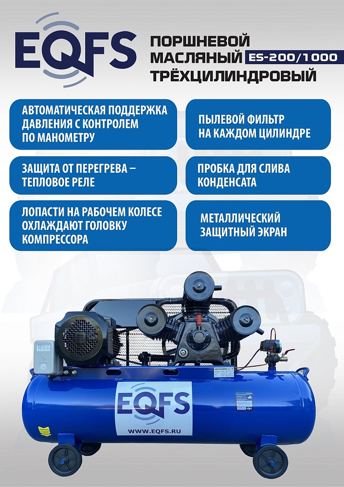 ES-200/1000 Компрессор поршневой трехцилиндровый 200 литров купить в Тюмени цена ✅ - Все для СТО