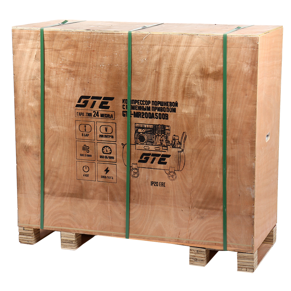 GTE-MR200A500B Компрессор поршневой ременной 220В 500л/мин. ресивер-200л