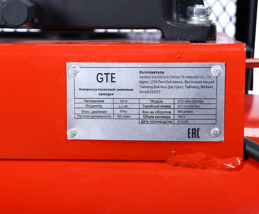 GTE-MR4100300A Компрессор поршневой с ременным приводом 380В купить в Тюмени цена ✅ - Все для СТО