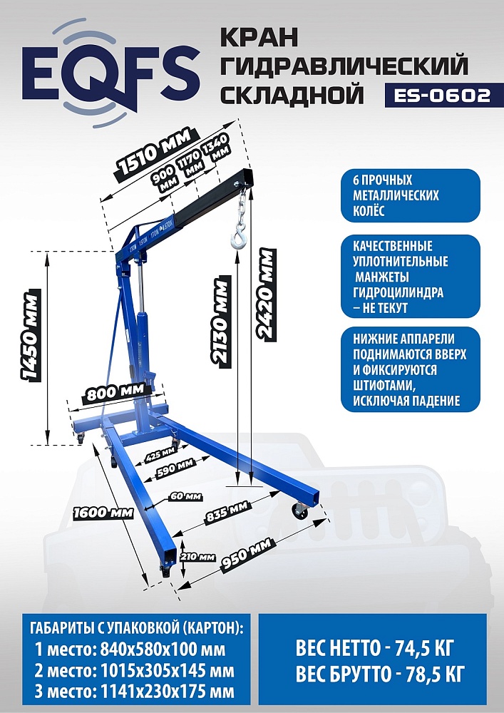 ES-0602 Кран гаражный, 2 т купить в Тюмени цена ✅ - Все для СТО