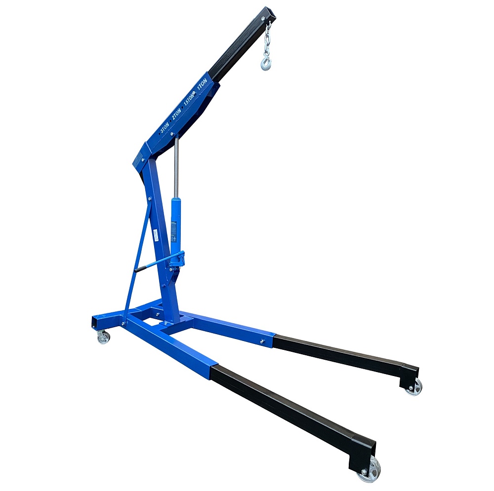 Кран гаражный гидравлический, складной.  Грузоподъемность 2,0 т. Высота подъема 2380мм. Длина стрелы 1500мм. Высота крана 1400мм.