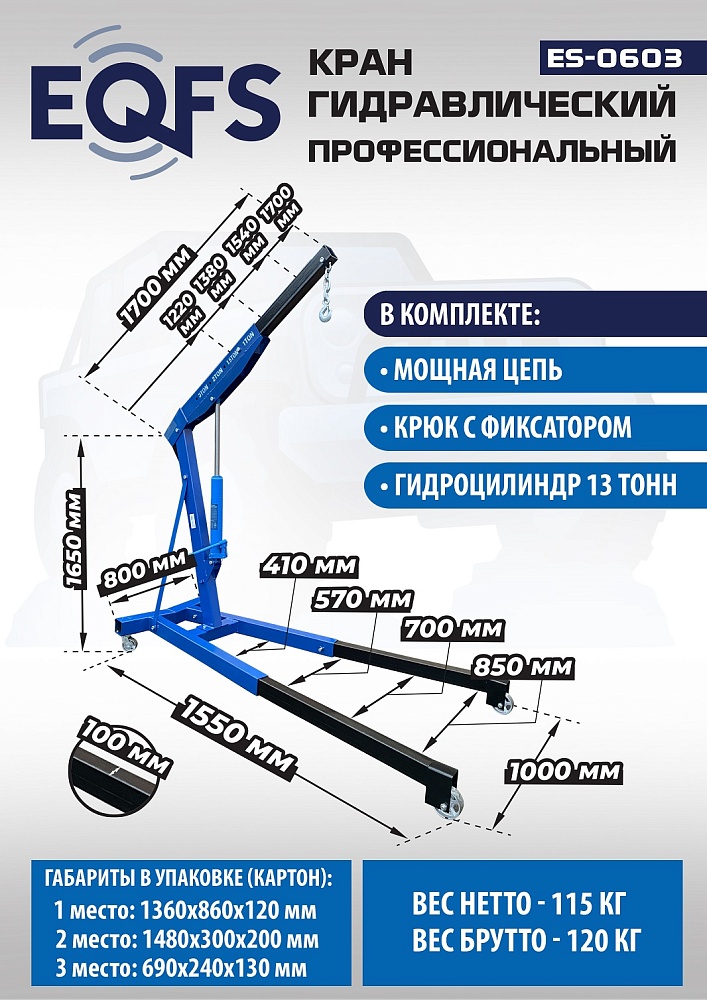 ES-0603 Кран гаражный, 3 т купить в Тюмени цена ✅ - Все для СТО