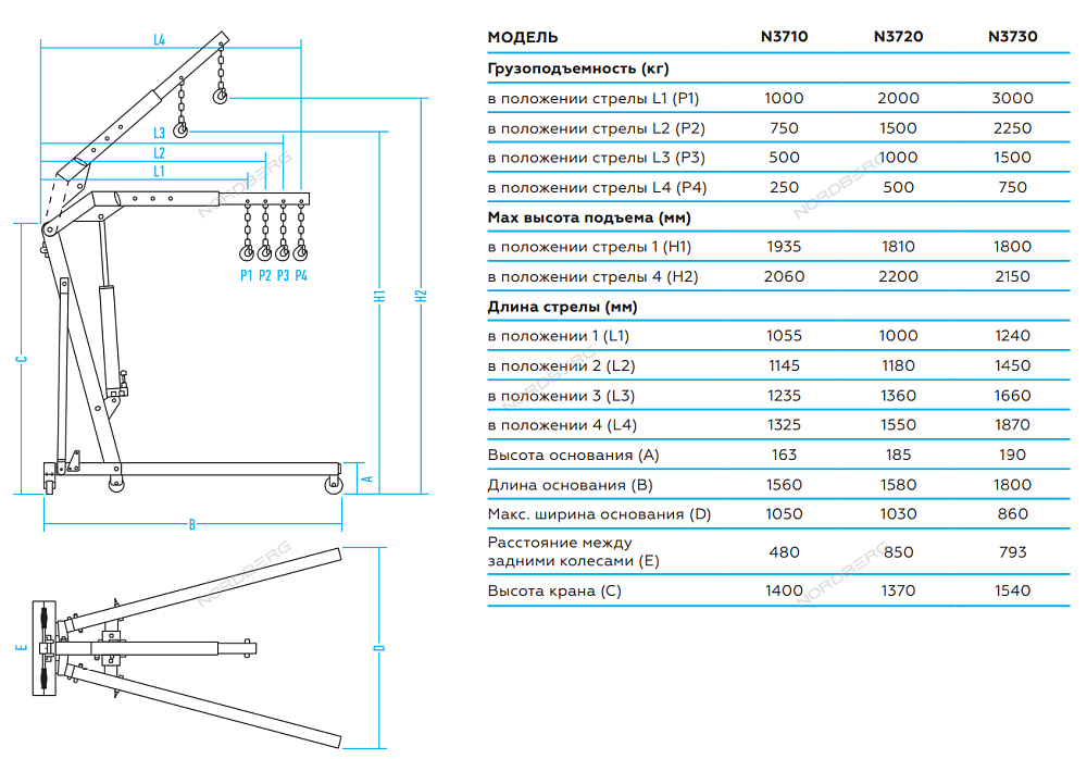 Кран гидравлический разборный NORDBERG N3720 купить в Тюмени цена ✅ - Все для СТО