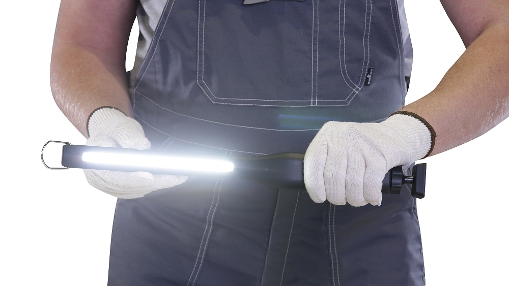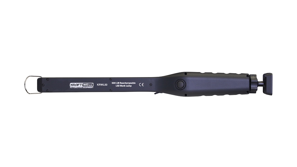 Светодиодная лампа KRWL50 найдет применение, как в быту, так и при ремонте автомобилей в автосервисе. Мощный световой поток 600 люмен обеспечивают 30 ярких светодиодов. Ультратонкий дизайн корпуса позволяет подсветить любое пространство, даже в труднодоступных местах. Корпус лампы изготовлен из алюминия и имеет степень защиты от пыли и влаги  IP52. Рукоятка корпуса с нескользящим покрытием SOFT TOUSH предотвращает выскальзывание лампы из рук. На нижнем торце корпуса расположен мощный магнитный держатель с вращающимся на 360 градусов шарниром, который позволяет надежно закрепить лампу на любой металлической поверхности, освобождая руки. На верхнем торце лампы расположено металлическое подвесное крепление.
