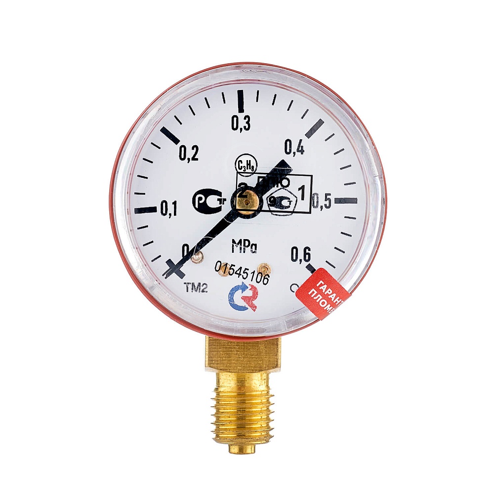 Сварочный манометр для пропана (C3H8) производится с диаметром корпуса 50 мм. Класс точности: 2,5. Корпус манометра для редуктора выполнен из стали. Прибор имеет радиальное присоединение, резьба присоединения М12х1,5.