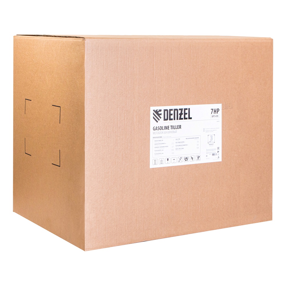 <p>Мотоблок Denzel 56405 DPT-470 мощностью 7 л.с., с ременным сцеплением, , фрезами 3 х 4, шкивом отбора мощности ШОМ, коробкой передач 3В/1Н, — техника для вспашки, прополки, культивации почвы, обеспечивающая ширину прохода 85 см и заглубление фрез до 35 см. Благодаря надежному 4-тактному двигателю серии Long Life мощностью 7 л.с. и увеличенному весу за счет чугунного корпуса редуктора он успешно справляется с обработкой плотного грунта. Мотоблок применяется для выполнения бытовых сельскохозяйственных работ.</p><h2>Преимущества</h2><ul><li>4 режима работы — 3 передачи вперед и одна назад позволяют подстраиваться под тип почвы и легко извлекать почвофрезы из любого грунта.</li><li>Удобная эксплуатация — рукоятки руля регулируются в 2 плоскостях — вертикально и относительно продольной оси машины.</li><li>Легкое управление — регулятор оборотов двигателя, выключатель зажигания и рычаг сцепления находятся на рукоятке перед пользователем.</li><li>Усиленный сошник толщиной 12 мм — можно менять глубину вспахивания, удерживать равновесие при обработке почвы и использовать его в качестве задней опоры при хранении мотоблока.</li><li>Многофункциональность и экономия бюджета — шкив отбора мощности позволяет подключать к мотоблоку активное навесное оборудование.</li><li>Защита от низкого уровня масла LO-protection — мотоблок не включится при незаполненном картере, такое решение предотвращает поломку двигателя и продлевает срок службы техники.</li><li>Безопасная работа — защитные крылья предотвращают вылетание почвы, камней и прочих предметов на пользователя.</li><li>Низкий расход топлива 1 л/ч — можно непрерывно работать более 3-х часов, не отвлекаясь на заправку.</li><li>Долговечность — чугунный корпус редуктора и стальные фрезы (в комплекте поставки 24 шт.) отличаются особой прочностью.</li><li>Надежный карбюратор — мотоблок работает стабильно даже при высокой нагрузке на двигатель.</li><li>Качественные детали — закаленный до твердости 45-50 HRС стальной коленвал и надежный распредвал обеспечивают высокую производительность мотоблока в любое время года.</li><li>Воздушный фильтр — поступающий в цилиндр воздух очищается от твердых частиц, что обеспечивает его сохранность — это особенно важно при обработке сухой почвы.</li><li>Эргономичность — рукоятки изогнутой формы находятся на оптимальном расстоянии друг от друга и усилены стальной перекладиной, поэтому пользователь не устанет даже при длительной работе.</li><li>Комфортная транспортировка — усиленная рукоятка-бампер и большие колеса с глубоким протектором позволяют с легкостью перемещать мотоблок до нужного места.</li><li>Складная ножка — дополнительная опора позволяет удобно располагать мотоблок в зоне хранения без риска опрокидывания.</li><li>Расширенная гарантия 3 года — качество мотоблока подтверждено производителем.</li></ul>