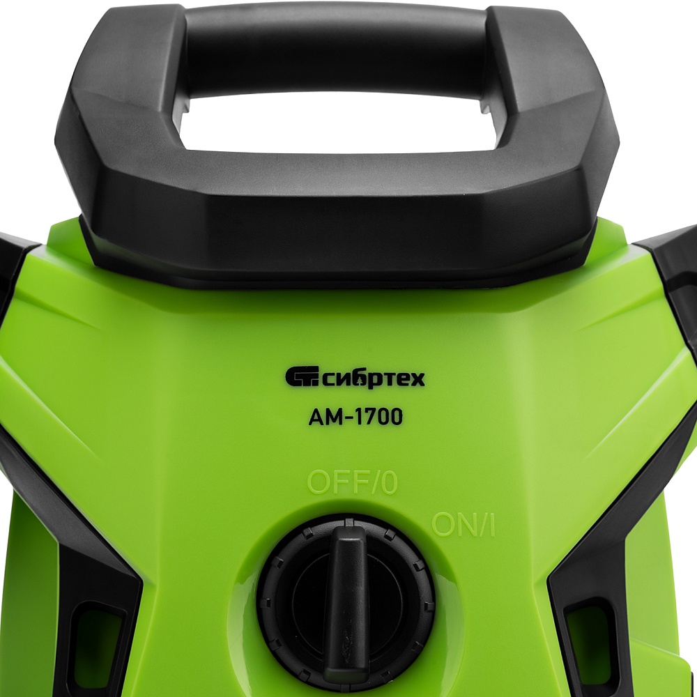 <p>Колесная моечная машина высокого давления Сибртех АМ-1700 58222 мощностью 1700 Вт поддерживает давление 130 бар и расходует 350 л воды в час. Предназначена для бытового применения, успешно справляется как с естественными загрязнениями, так и с въевшимися пятнами или масляными разводами. Может использоваться для мытья автомобиля, очищения садовых дорожек, фасада дома, заборов, инвентаря и других предметов. Машина способна работать с режиме самовсасывания, поэтому отсутствие водопровода не помеха: источником воды может быть любой водоем или резервуар.</p><h2>Преимущества</h2><ul><li>Термозащита — в случае перегрева двигатель останавливается, что предотвращает его поломку.</li><li>Безопасность — перепускной клапан не допускает превышения максимального рабочего давления.</li><li>Защита от непредвиденного пуска — главный выключатель препятствует случайному включению, рычаг пистолета блокируется в выключенном положении.</li><li>Высокий ресурс — алюминиевая крыльчатка помпы устойчива к коррозии.</li><li>Быстрая подготовка к работе — пистолет подключается одним движением, шланг подачи воды присоединяется при помощи быстросъемного адаптера.</li><li>Эффективная фильтрация — вода на входе очищается от частиц грязи и мелкого песка, поэтому обрабатываемые поверхности и крыльчатка помпы не царапаются и не разрушаются. </li><li>Использование моющих средств — к пистолету можно подключить пенообразователь (не входит в комплект поставки).</li><li>Эргономичность — производитель предусмотрел кронштейн для сетевого шнура и держатель для пистолета.</li><li>Компактность — моечная машина не занимает много места, ее можно хранить даже в квартире.</li><li>Удобное перемещение — у машины имеются большие колеса и рукоятка.</li></ul>