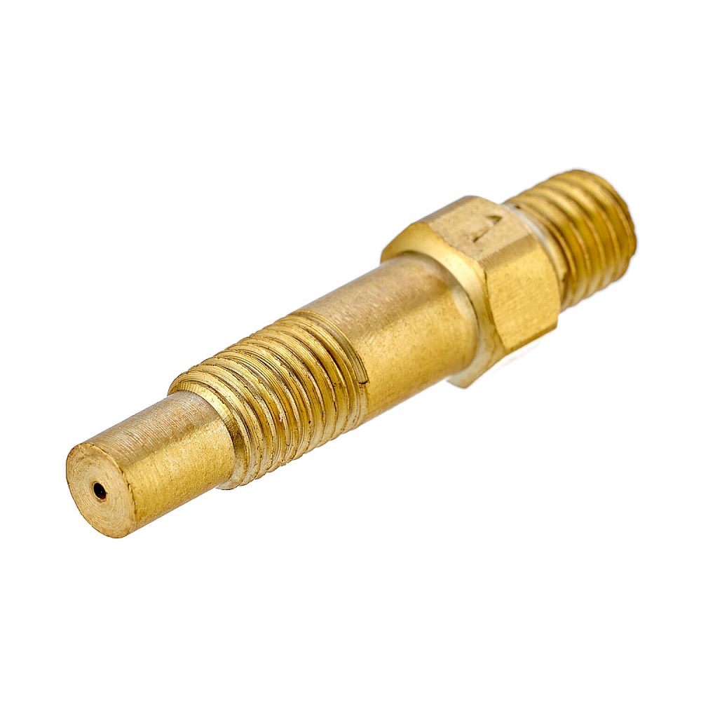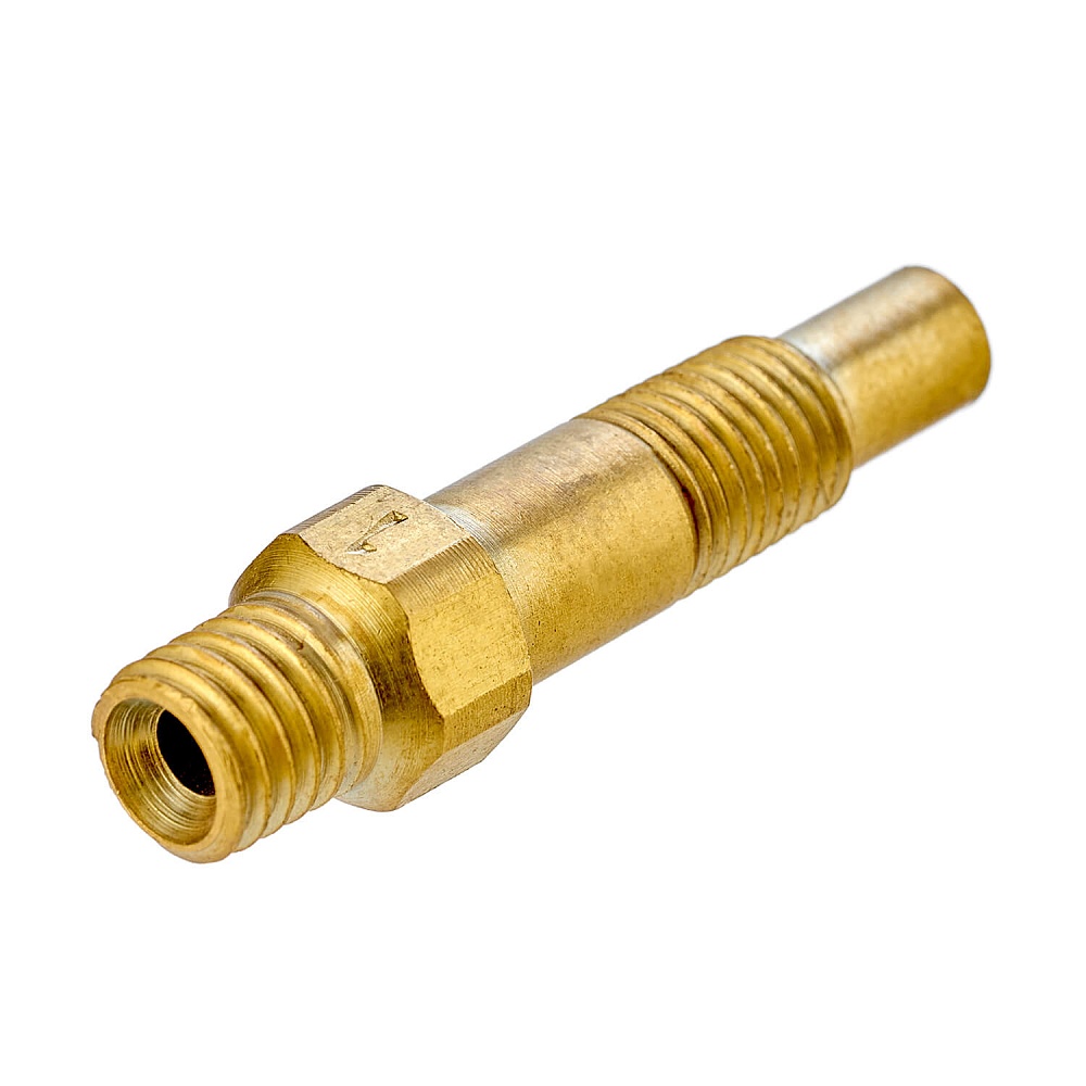 Латунный внутренний мундштук №1 для бензинового резака РБ-02 (тип «Луч»). Толщина разрезаемого металла 3–15 мм. Мундштук присоединяется к катушке резака РБ-02 при помощи резьбы М8х1 мм, а к самой головке резака при помощи наружной резьбы М8х1,25.