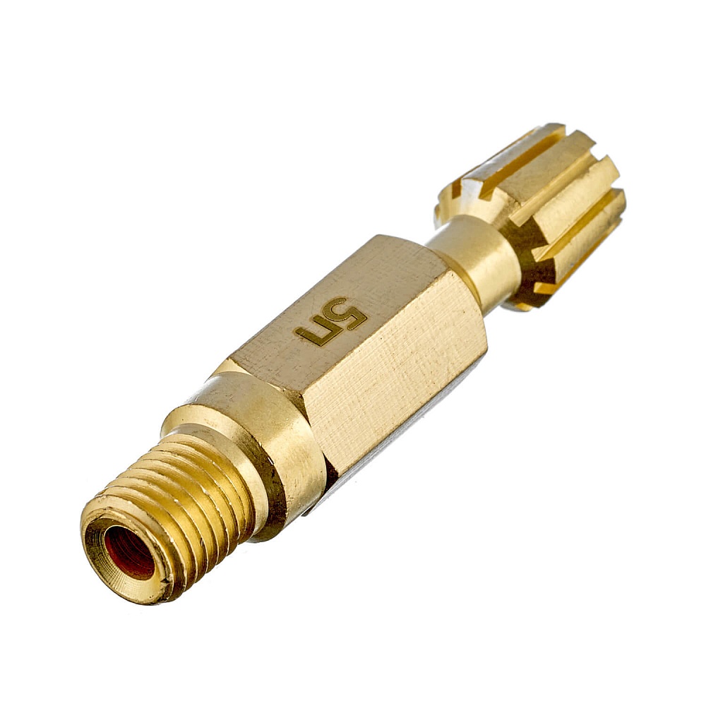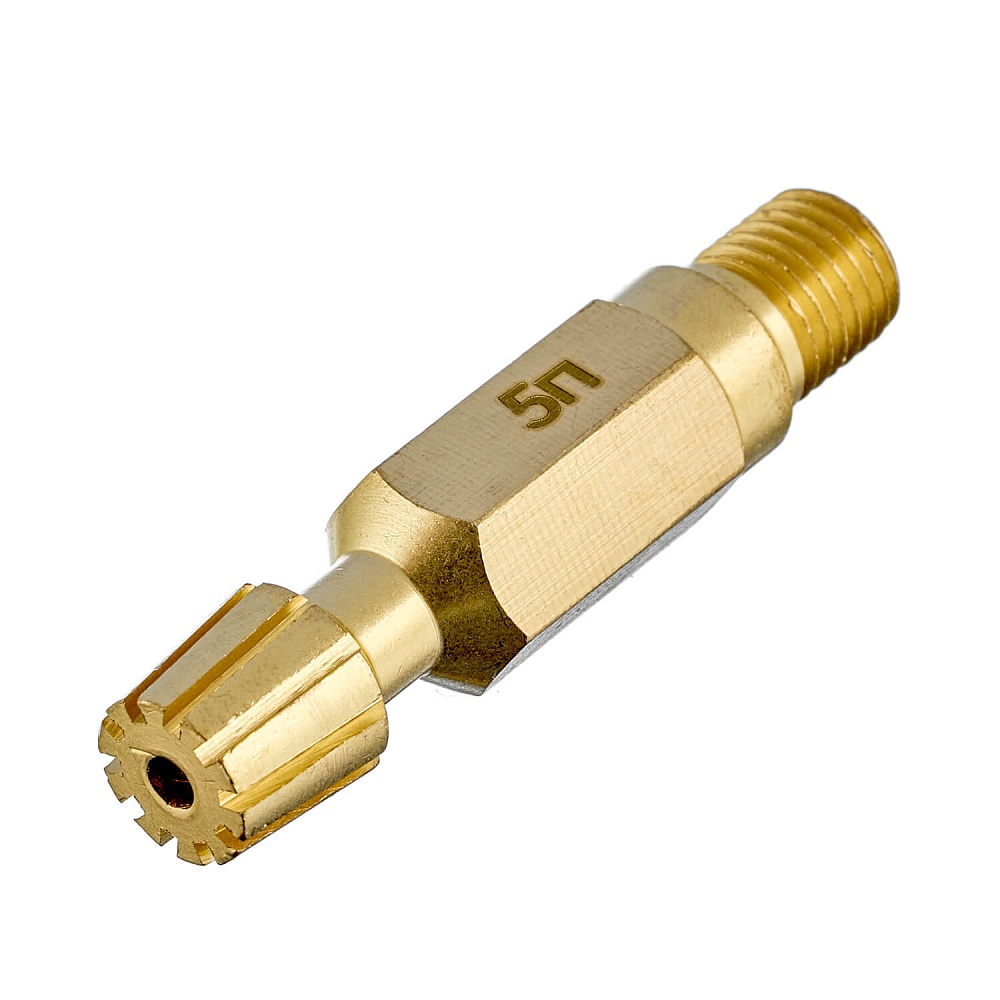 Латунный внутренний мундштук №5П для инжекторных резаков серии Р3П-01, Р3П-02, Р3П-22 и Р3П-03. Толщина разрезаемого металла 100–200 мм. Мундштук с шлицевыми пазами для выхода подогревающего пламени.