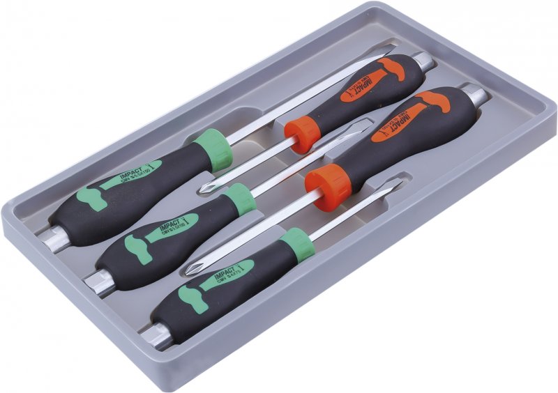 SD-9915 Набор силовых ударных отверток (5 предметов). Особенности: Можно использовать как зубило, отвёртка, ломик. Для увеличения крутящего момента, возможно использовать гаечный ключ. Металлический затыльник выдерживает удар молотка 3000G. Магнитные наконечники отверток. Ручки с резиновым покрытием для надежной фиксации. Комплект набора: Отвертка шлиц 6,5х150 мм - 1 шт. Отвертка шлиц 5,5х100 мм - 1 шт. Отвертка шлиц 4х75 мм - 1 шт. Отвертка PH 2х100 мм - 1 шт. Отвертка PH 1х75 мм - 1 шт. Картонная коробка с пластиковым ложементом - 1 шт.