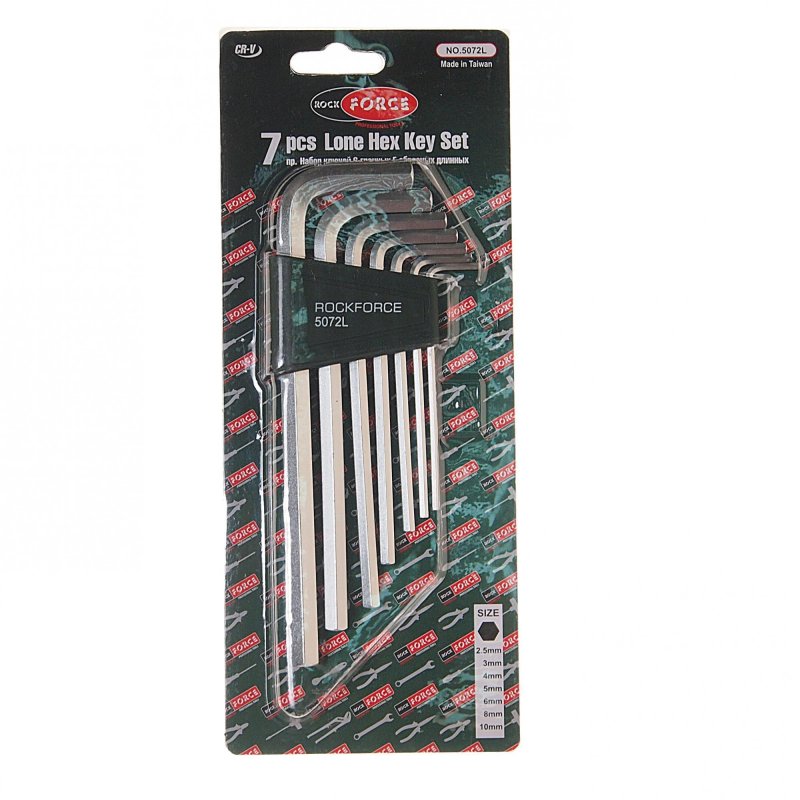 Код товара: 5703, Состав: Набор ключей шестигранных RF-5072L: удлиненных 2.5-10мм 7пр. на пласт. держат. ROCKFORCE /1/25/50