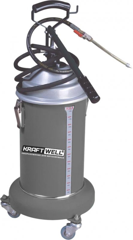 KraftWell KRW1798 – мобильный нагнетатель солидола с ручным приводом, который позволяет осуществлять смазку узлов и агрегатов в условиях автосервиса.