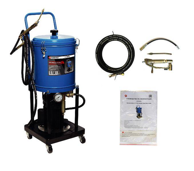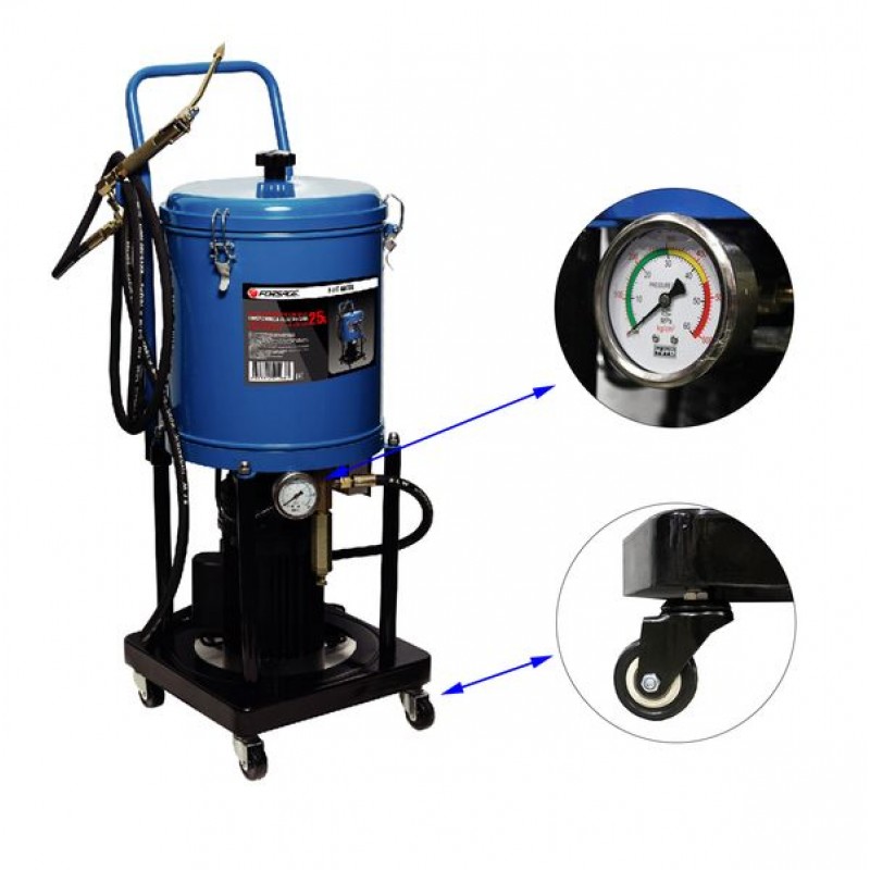 Нагнетатель густой смазки электрический( 25л,220V,1,1кВт,0,35 л/мин,250-400 Bar,длина шланга 4м,раб.t-10гр.+50гр) Forsage F-HG-69230 купить в Тюмени цена ✅ - Все для СТО