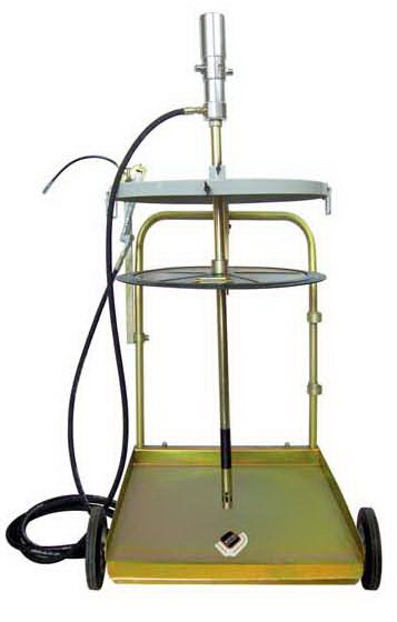 Комплект для раздачи масла с насосом для бочек 180-220 кг, на тележке, степень сжатия 5:1. Производительность 17 л/мин.
