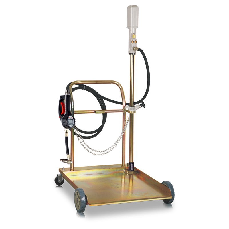 Комплект для раздачи масла с насосом для бочек 180-220 кг, на тележке, степень сжатия 5:1. Производительность 17 л/мин.